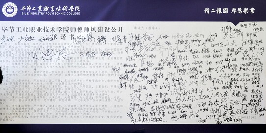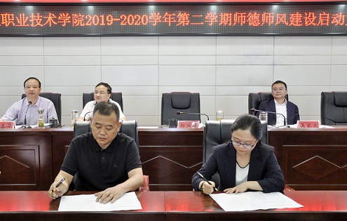 會上,院長與副院長,副院長與分管部門負責(zé)人,部門負責(zé)人與所屬教職員工層層簽訂師德師風(fēng)責(zé)任書;全院教職員工就師德師風(fēng)建設(shè)作出公開承諾并簽名。