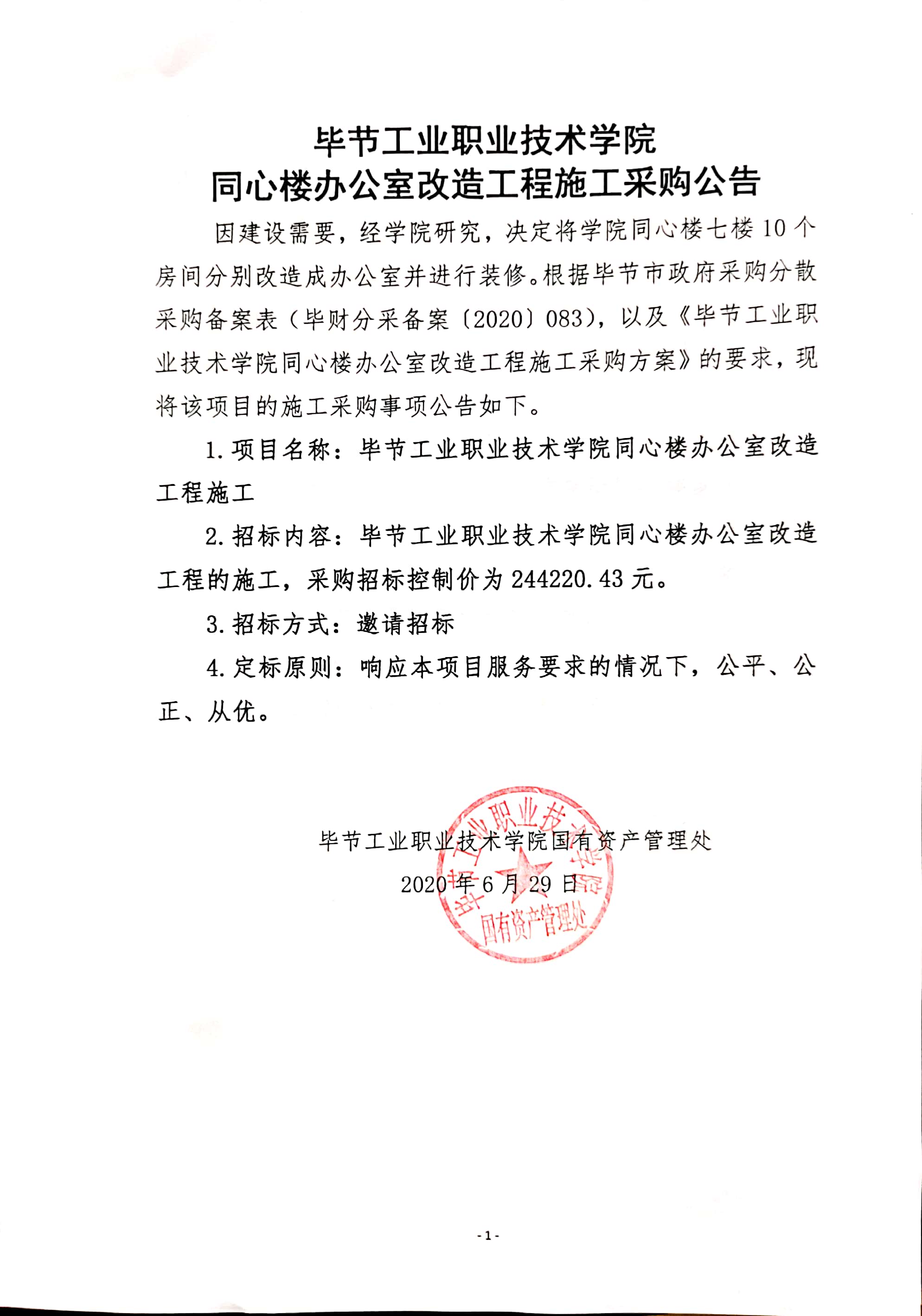 畢節(jié)工業(yè)職業(yè)技術(shù)學(xué)院同心樓辦公室改造工程施工采購公告