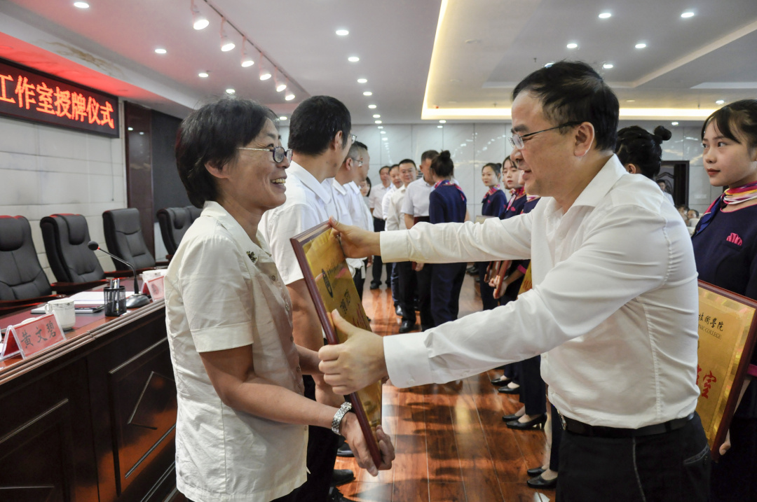 7月2日上午,學(xué)院職業(yè)教育技能名師工作室授牌儀式在同心樓9樓會(huì)議室舉行,院黨委書記李涌、院長邱國援及院領(lǐng)導(dǎo)付善華、陳穎、吳家文、黃河、黃文碧、朱厚淵、漆順剛出席會(huì)議并為各名師工作室授牌。