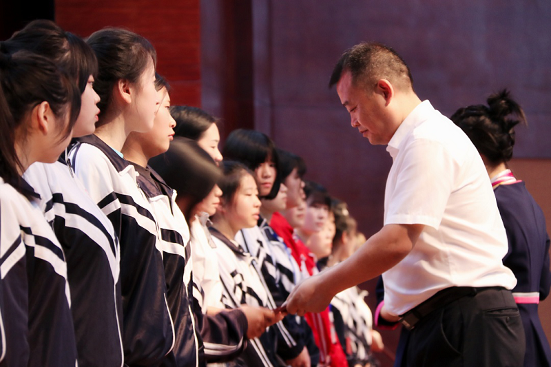 (學(xué)生向?qū)W校領(lǐng)導(dǎo)及畢業(yè)班班主任獻(xiàn)花)