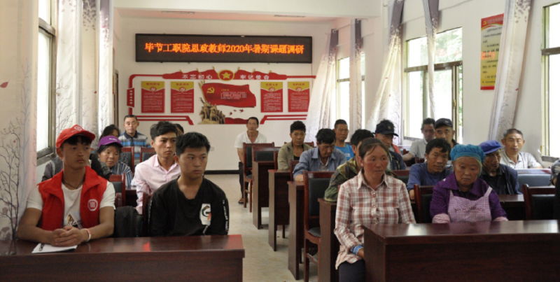 為更好完成省委組織部和市委組織部“貫徹落實習近平新時代中國特色社會主義思想在改革發(fā)展穩(wěn)定中攻堅克難案例教學課程開發(fā)”和“貫徹落實習近平新時代中國特色社會主義思想好課程開發(fā)”工作,畢節(jié)工業(yè)職業(yè)技術學院馬克思主義教學部《攻克深度貧困最后堡壘——從赫章縣安樂溪鄉(xiāng)掛牌督戰(zhàn)看貴州省脫貧攻堅的最后一公里》和《“四類人員"思政課到基層——培養(yǎng)“有技能的思想”、“有思想的技能”的高素質(zhì)人才,教育助力脫貧攻堅》課程開發(fā)組以及我院教師申報畢節(jié)社科聯(lián)立項課題《地方職業(yè)院校助力鄉(xiāng)村振興發(fā)展的策略研究—以畢節(jié)工業(yè)職業(yè)技術學院為例》課題組于7月25日赴赫章縣安樂溪鄉(xiāng)、可樂鄉(xiāng)進行課程開發(fā)和課題考察調(diào)研。馬克思主義教學部負責人閻潤萍等7名思政課老師參加了此次考察調(diào)研活動。