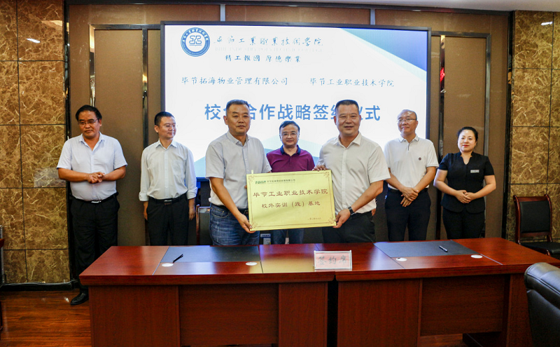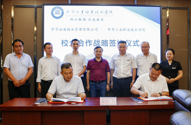 為深入貫徹落實習(xí)近平總書記對技能人才工作重要指示精神,切實做好新時代技能人才工作,9月3日,畢節(jié)拓海物業(yè)管理有限公司與畢節(jié)工業(yè)職業(yè)技術(shù)學(xué)院校企合作戰(zhàn)略協(xié)議簽訂儀式在學(xué)院同心樓三樓會議室舉行。畢節(jié)拓海物業(yè)管理有限公司總經(jīng)理楊月強、常務(wù)副總經(jīng)理邱鋒一行,學(xué)院黨委書記李涌,黨委副書記、院長邱國援,黨委委員、副院長吳家文、相關(guān)部門負責人及教師代表出席儀式。簽約儀式由邱國援主持。