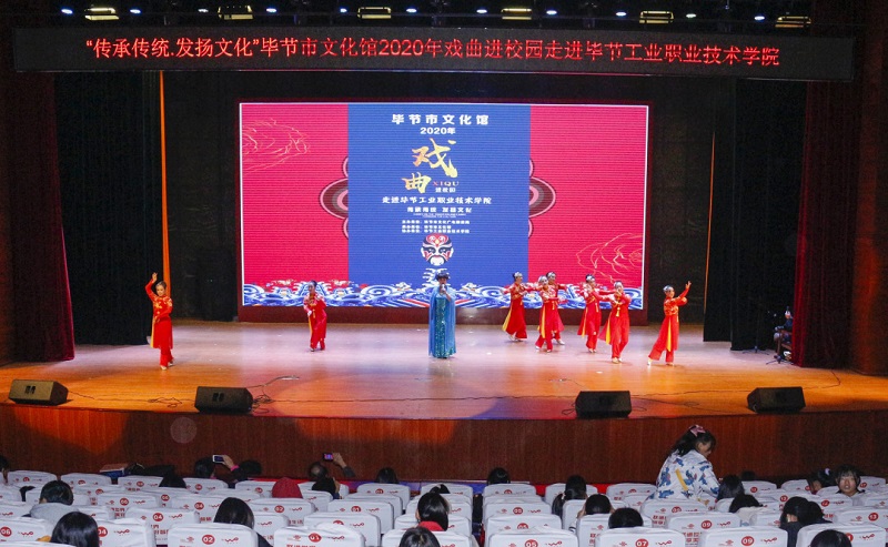 戲曲,是中國傳統(tǒng)文化的瑰寶,是一種無形的歷史文化遺產(chǎn)。為弘揚(yáng)社會主義核心價值觀,讓學(xué)生更多地了解中華優(yōu)秀戲曲文化,傳承中華文明,提高學(xué)生的道德素養(yǎng),激發(fā)學(xué)生熱愛祖國文化、熱愛家鄉(xiāng)的美好情感。我院于2020年9月27日與畢節(jié)市文化廣電旅游局、畢節(jié)市文化館聯(lián)合舉辦“傳承傳統(tǒng)·發(fā)揚(yáng)文化”戲曲進(jìn)校園活動,為學(xué)校師生帶來戲曲傳統(tǒng)文化美的享受。