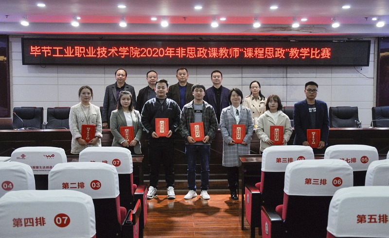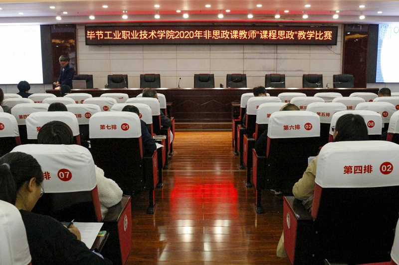 為深入學(xué)習貫徹習近平總書記關(guān)于教育的重要論述、全國教育大會精神,貫徹落實中共中央辦公廳、國務(wù)院辦公廳《關(guān)于深化新時代學(xué)校思想政治理論課改革創(chuàng)新的若干意見》《高等學(xué)校課程思政建設(shè)指導(dǎo)綱要》等文件精神,把思想政治教育貫穿人才培養(yǎng)體系,全面推進學(xué)院課程思政建設(shè),發(fā)揮好每門課程的育人作用,提高學(xué)院人才培養(yǎng)質(zhì)量,培養(yǎng)擔當民族復(fù)興大任的時代新人。2020年10月14日下午,畢節(jié)工業(yè)職業(yè)技術(shù)學(xué)院在行政樓9樓會議室舉行2020年非思政課教師"課程思政"教學(xué)比賽,全院教職工觀摩了比賽。