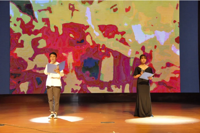 來自畢節(jié)職業(yè)技術學院的吳培紅、譚臻南兩位老師飽含深情的朗誦了《青春中國》。隨著鏗鏘有力的聲音,黃河的水、昆侖的山、北國的飛雪、南國的椰林似一幅優(yōu)美的畫卷紛至沓來。
