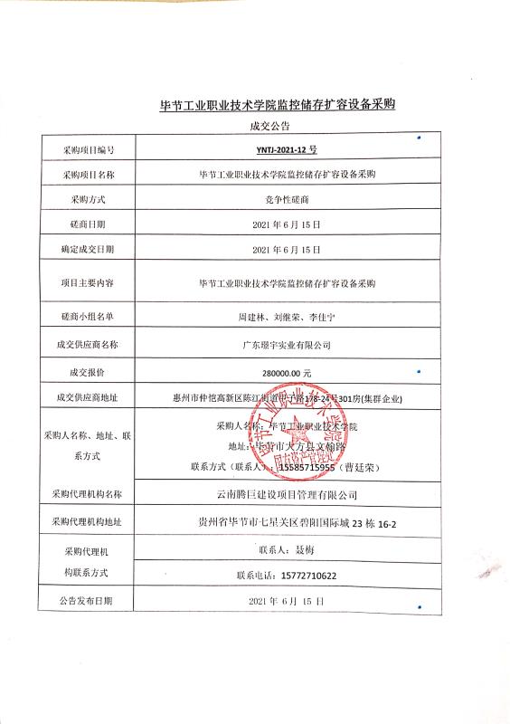 畢節(jié)工業(yè)職業(yè)技術(shù)學(xué)院監(jiān)控儲存擴容設(shè)備采購成交公告