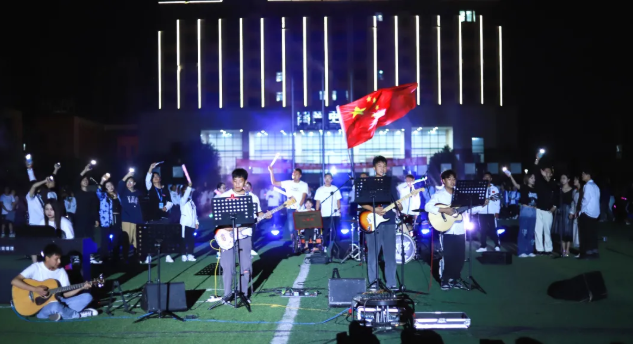 樂(lè)隊(duì)的歌聲引起了全場(chǎng)師生的共鳴