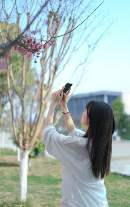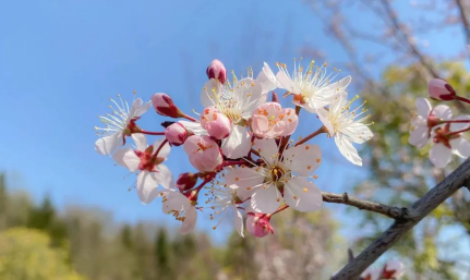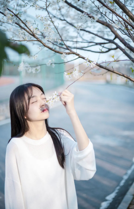 抬頭瞥見幾許粉白