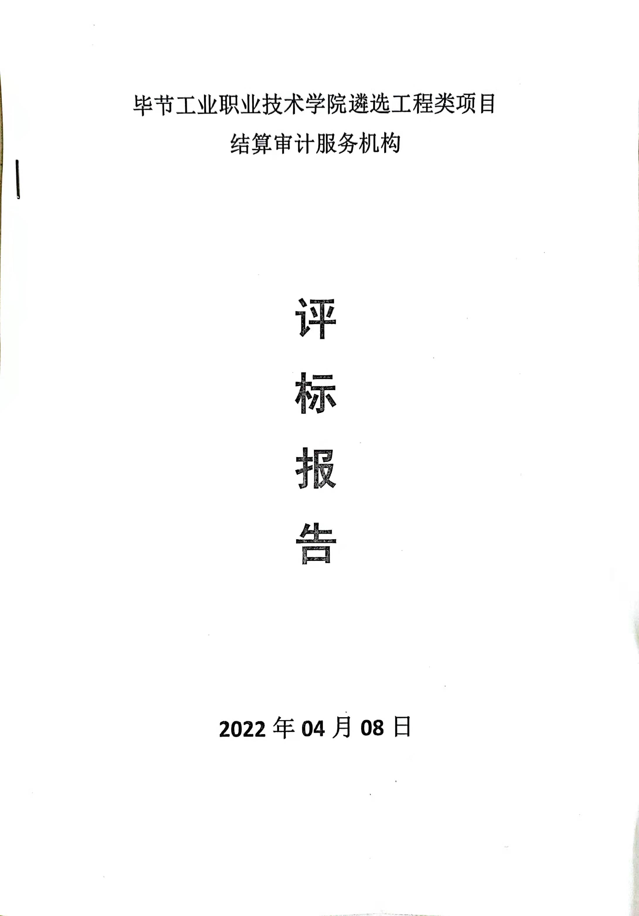 畢節(jié)工業(yè)職業(yè)技術(shù)學(xué)院遴選工程類項(xiàng)目結(jié)算審計(jì)服務(wù)機(jī)構(gòu)評(píng)價(jià)報(bào)告