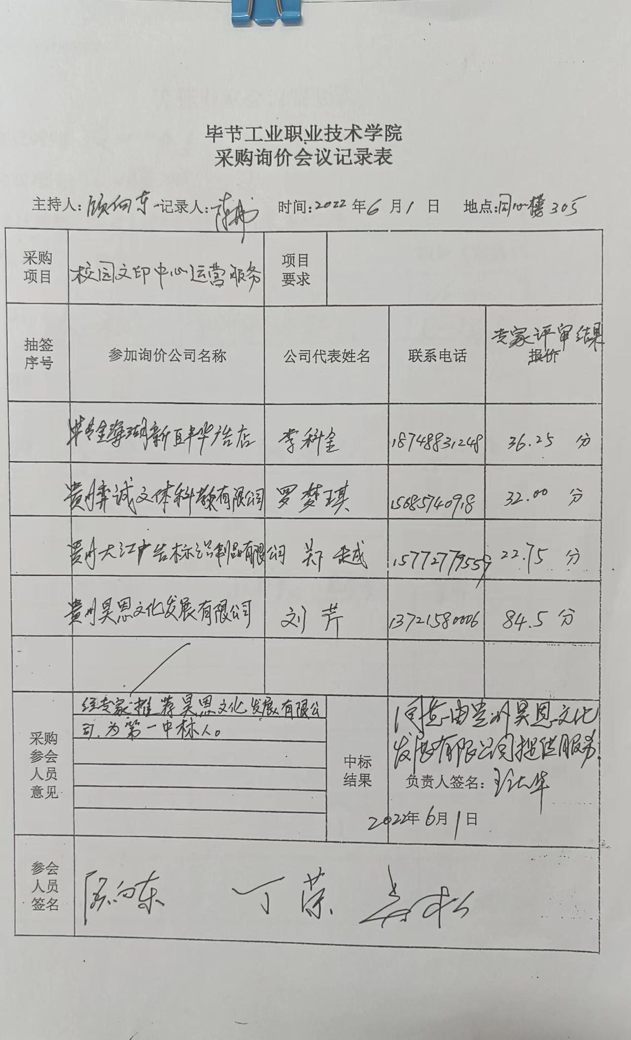 畢節(jié)工業(yè)職業(yè)技術(shù)學(xué)院采購(gòu)詢價(jià)會(huì)議記錄表公示