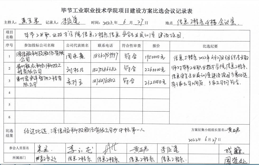 畢節(jié)工業(yè)職業(yè)技術(shù)學(xué)院信息工程系信息安全專業(yè)實(shí)訓(xùn)室建設(shè)項(xiàng)目比選結(jié)果公示