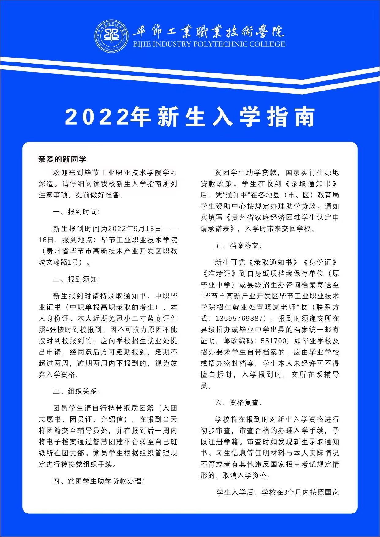 畢節(jié)工業(yè)職業(yè)技術(shù)學(xué)院2022年新生入學(xué)指南