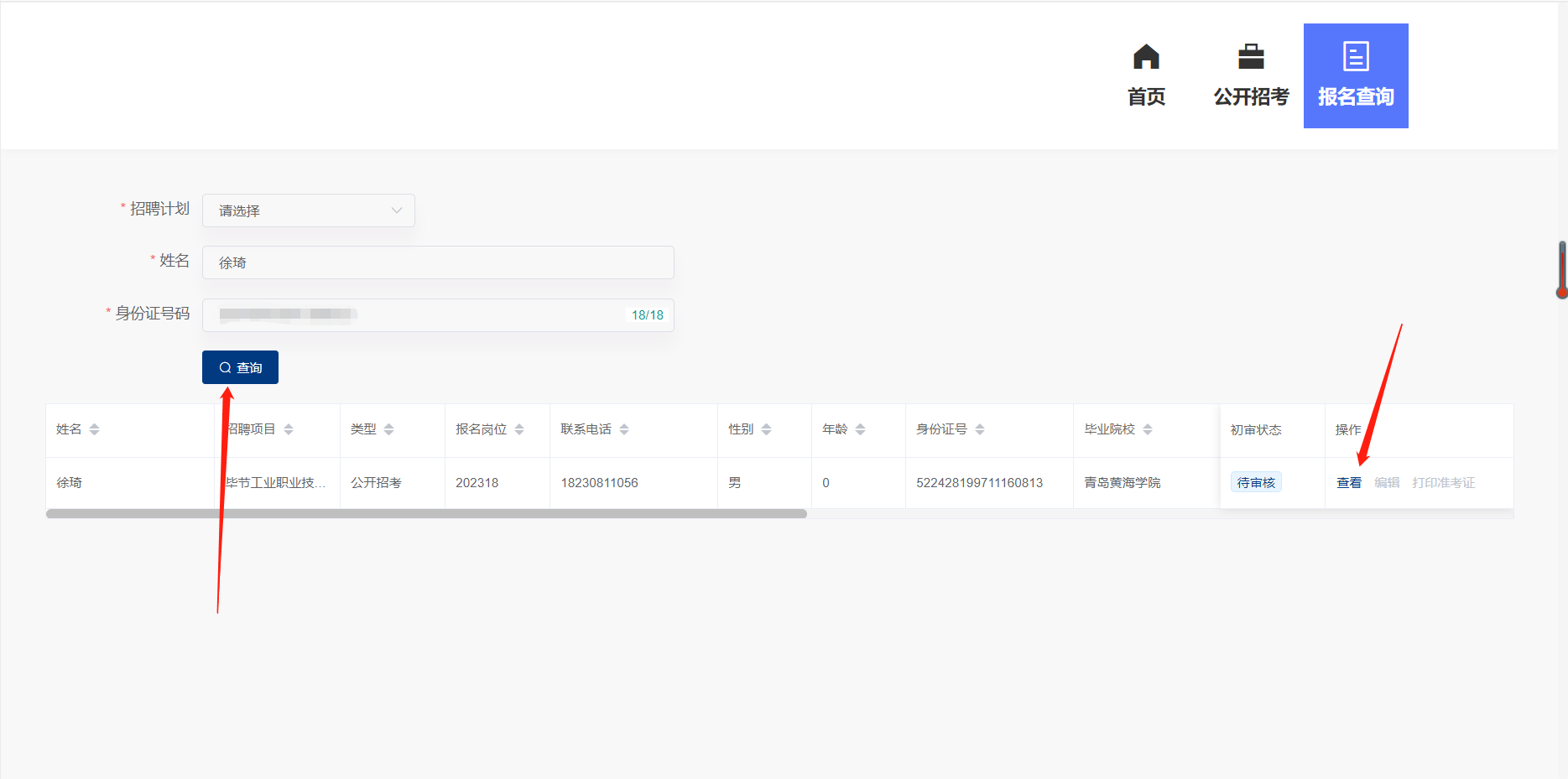 輸入姓名+身份證件號查詢報名信息是否存在