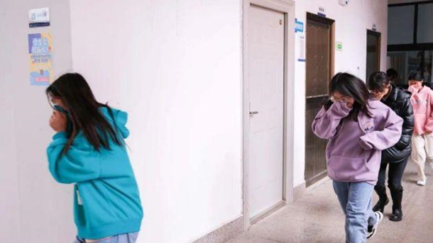 上午11點,隨著警笛的拉響,消防演練就此拉開序幕,同學(xué)們用手掩住口鼻,壓低身體,保持冷靜,行動迅速,按照指定的逃生路線有序撤離到安全區(qū)域,撤離結(jié)束后各班迅速清點人數(shù),確保全部人員安全撤離。
