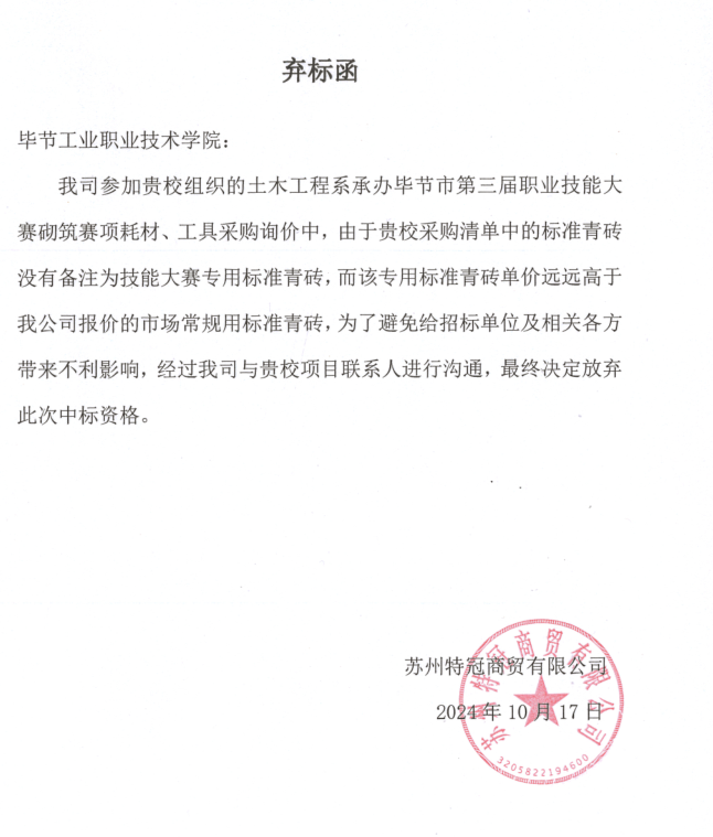 畢節(jié)工業(yè)職業(yè)技術學院土木工程系2024年建設工程數字化計量與計價技能大賽設備耗材采購流標公告