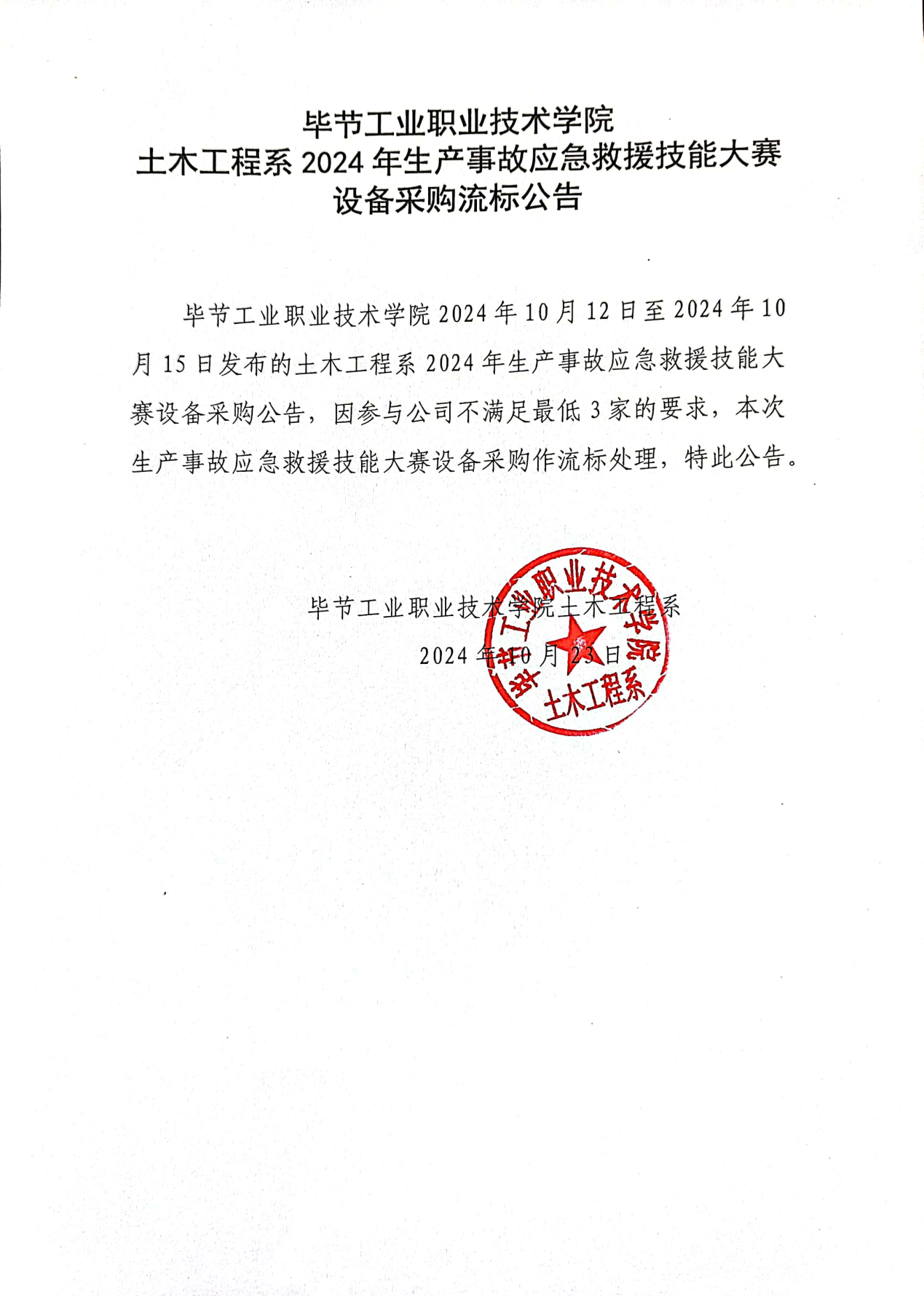 畢節(jié)工業(yè)職業(yè)技術(shù)學(xué)院土木工程系2024年生產(chǎn)事故應(yīng)急救援技能大賽設(shè)備采購流標(biāo)公告