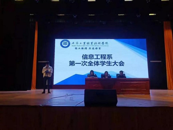 為進一步加強系部管理與建設(shè),畢節(jié)工業(yè)職業(yè)技術(shù)學(xué)院信息工程系于2019年12月19日在學(xué)院會議中心召開學(xué)生大會,到場的有信息工程系負(fù)責(zé)人黃亞男,系學(xué)生科胡蓉、潘愚老師、各班班主任及信息工程系全體學(xué)生。