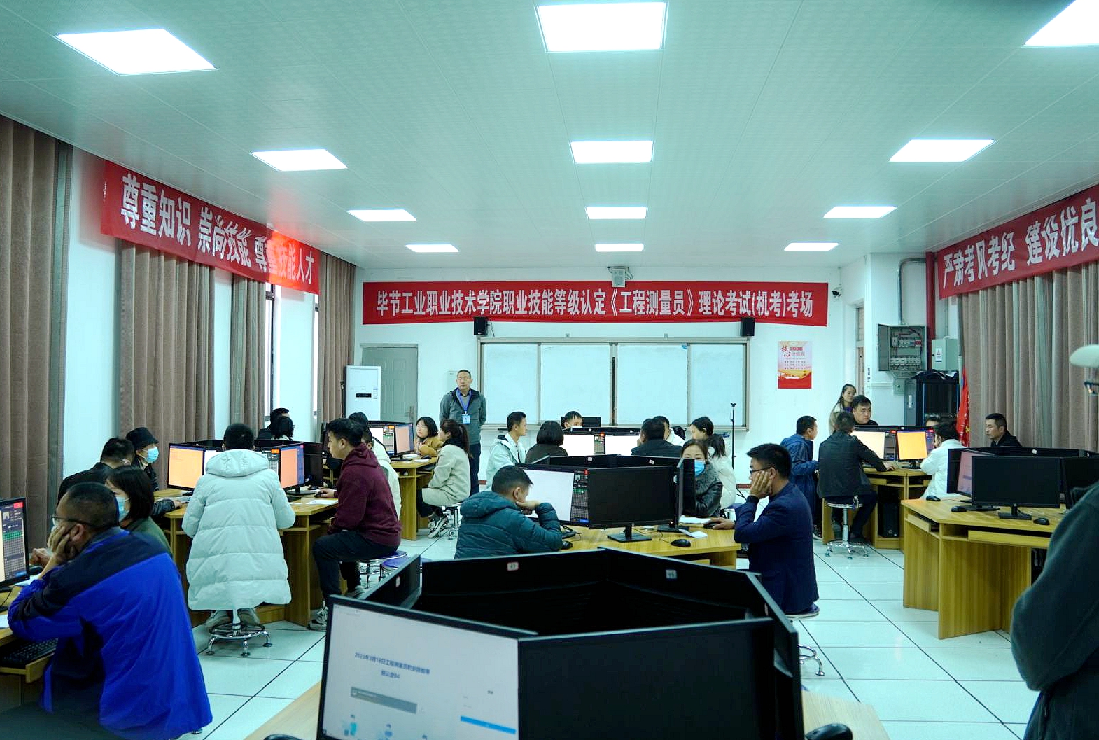 為進一步推進我院“雙師型”隊伍建設(shè),激發(fā)創(chuàng)新創(chuàng)造活力,促進技藝傳承發(fā)展,提升教師技能成長,弘揚工匠精神。3月18日,經(jīng)省職業(yè)技能鑒定指導(dǎo)中心批準,學(xué)院職業(yè)技能等級認定中心在相關(guān)部門的協(xié)助下,順利完成《工程測量員》(三、四級)、《計算機維修工》(三、四級)兩個工種的職業(yè)技能等級認定考評工作。