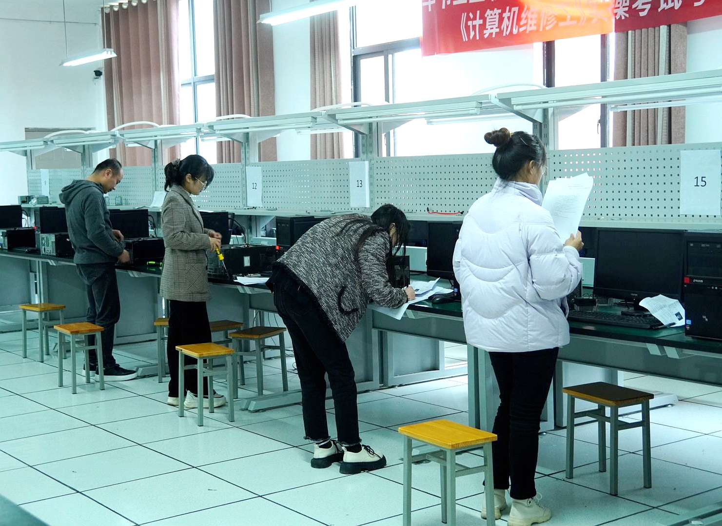 經(jīng)過一番嚴格的理論考試和實操考核,參與此次《工程測量員》(三、四級)、《計算機維修工》(三、四級)職業(yè)技能等級認定考評的65名考生中,有24名考生通過《工程測量員》(三級)考評,2名考生通過《工程測量員》(四級)考評,而通過《計算機維修工》(三級)考評的有25人,通過《計算機維修工》(四級)考評的有4人。