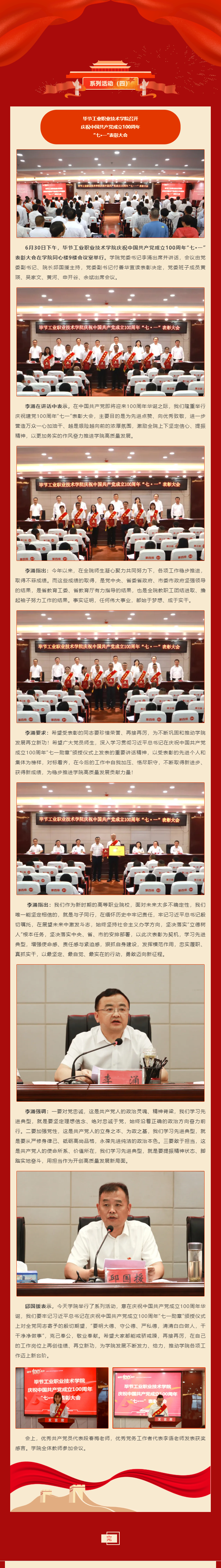 慶祝建黨100周年系列活動(四) | 畢節(jié)工業(yè)職業(yè)技術學院召開慶祝中國共產黨成立100周年 “七·一”表彰大會
