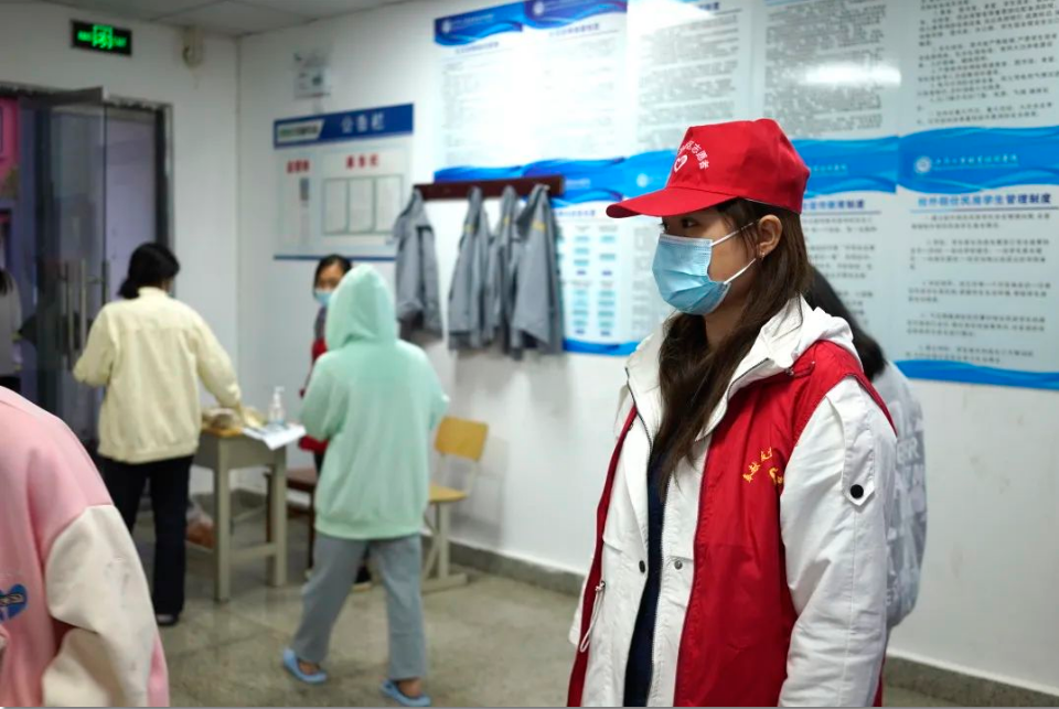 “疫”路奔跑的精靈 廖慧同學(xué)系畢節(jié)工業(yè)職業(yè)技術(shù)學(xué)院信息工程系大數(shù)據(jù)技術(shù)與應(yīng)用專業(yè)學(xué)生,共青團(tuán)員,志愿者。自實(shí)行靜默管理以來,廖慧主動申請加入了學(xué)院靜默管理志愿者服務(wù)隊(duì),擔(dān)任宿舍生活區(qū)二期四號樓的志愿者小組長。 九月的畢節(jié),秋風(fēng)微涼。廖慧不怕冷,不怕黑,似乎比平時(shí)堅(jiān)強(qiáng)勇敢了許多,每天早晨,天還未亮,她就第一個(gè)起床,穿上志愿者服裝,開始準(zhǔn)備工作。 “在這場沒有硝煙的戰(zhàn)爭中,我和老師們一起沖鋒陷陣,測量體溫、統(tǒng)計(jì)信息、匯總數(shù)據(jù)、維持秩序、通知同學(xué)。凌晨兩點(diǎn),學(xué)校臨時(shí)通知全員核酸檢測,作為志愿者,凌晨一點(diǎn)就得起床做準(zhǔn)備,到各個(gè)寢室敲門提醒同學(xué),在奔跑途中,鞋子都來不及穿好,又一間一間寢室的統(tǒng)計(jì)學(xué)生在寢人數(shù),為同學(xué)們發(fā)放口罩,提醒她們多穿衣服注意保暖……”“這次參加志愿者服務(wù),讓我收獲了很多感動,感恩老師們精心的呵護(hù);感恩不遠(yuǎn)千里前來支援的醫(yī)護(hù)人員;感恩每一個(gè)在冷雨中穿行的身影;感恩一日三餐為我們幫前幫后的食堂工作人員……”,廖慧同學(xué)激動地說。 “同學(xué),注意間隔距離2米?!薄巴瑢W(xué),請打開貴州健康碼掃描二維碼?!薄巴瑢W(xué),請有序排隊(duì)”“同學(xué),請戴好口罩,間隔2米”。從宿舍樓到醫(yī)務(wù)室來回的奔跑,完成核酸工作已是凌晨三點(diǎn)多,天很冷,身體也略顯疲憊,可是廖慧同學(xué)并沒有停下,馬上又投入到核酸采樣的數(shù)據(jù)核實(shí)之中…… 廖慧同學(xué)的身后,核酸采樣工作還在繼續(xù),同學(xué)們整齊有序地矗立雨中等待,宛如一棵棵接受秋雨洗禮的青松,以昂揚(yáng)的姿態(tài),迎接清晨的曙光。
