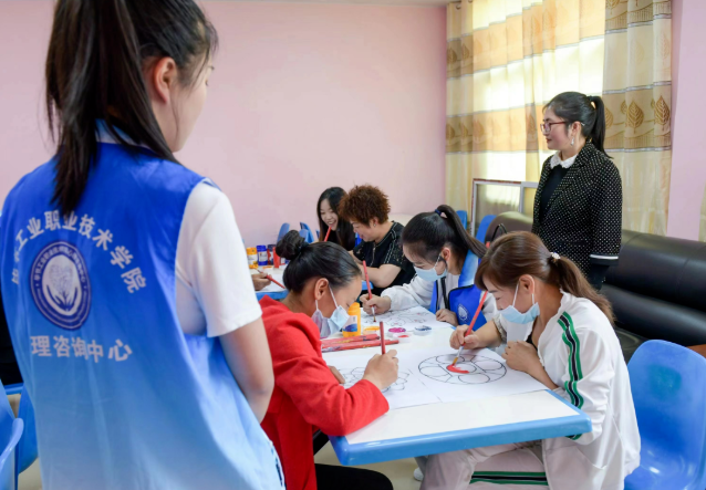 心理健康教育與咨詢中心還開展了針對敬老院工作人員的心理輔導活動,引導工作人員畫曼陀羅圖畫。在安寧舒緩的音樂的襯托下,畫者們帶著自己的感受去畫畫,聆聽自己內(nèi)心的聲音,使用不同的線條、色彩去描繪自己的內(nèi)心世界。在討論環(huán)節(jié),工作人員們根據(jù)自己的感受討論了如下主題:我們的生命也該像畫一樣需要留白;我們應該轉(zhuǎn)變思維、找個欣賞別人的理由;我們應該大膽的活出自己想要的模樣;我們要用我們的愛溫暖這個世界……工作人員們踴躍發(fā)言,互相傾訴著自己的故事,達到了舒緩情緒、自我療愈的目的。