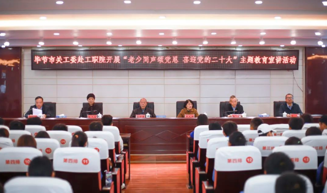 5月20日,畢節(jié)市關(guān)工委主任周長(zhǎng)琦、副主任吳學(xué)香、楊旭、張志俠、梁軍一行受邀赴我院開展“老少同聲頌黨恩·喜迎黨的二十大”主題教育宣講,并實(shí)地調(diào)研我院辦學(xué)情況。學(xué)院黨委班子成員李涌、邱國(guó)援、付善華、黃文碧、申開谷,工會(huì)、婦聯(lián)主席李淑文及相關(guān)部門人員陪同調(diào)研。宣講會(huì)由黨委副書記付善華主持,學(xué)院師生代表200余人聆聽宣講。