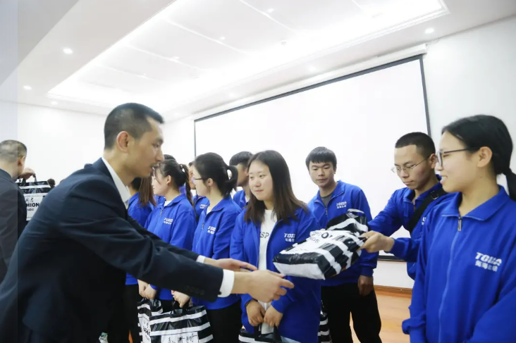 會(huì)上,集團(tuán)副總經(jīng)理雷中偉、區(qū)域總經(jīng)理馮定、向琪分別用自身經(jīng)歷勉勵(lì)同學(xué)們堅(jiān)定信念、拼搏奮進(jìn)。隨后,集團(tuán)各部門經(jīng)理與同學(xué)進(jìn)行深入細(xì)致的交流。同學(xué)們表示:來(lái)到拓海生活服務(wù)集團(tuán),就像回家一樣,感覺到很溫暖。在校期間所學(xué)課程也很有趣、很實(shí)用。自己一定不會(huì)辜負(fù)企業(yè)和學(xué)校的期望,學(xué)好專業(yè)知識(shí),為家鄉(xiāng)的物業(yè)行業(yè)做貢獻(xiàn)。最后,企業(yè)為同學(xué)們發(fā)放了量身定制的西服并合影留念。