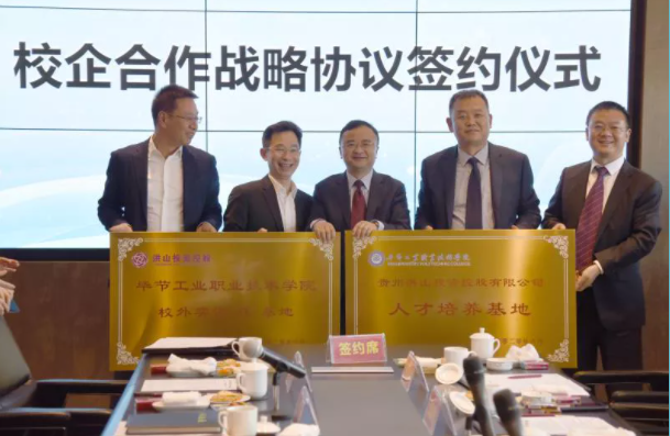隨后,貴州洪山投資控股有限公司董事長金烈森和學(xué)院院長邱國援簽訂了校企合作戰(zhàn)略協(xié)議書,并完成授牌儀式。