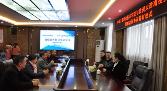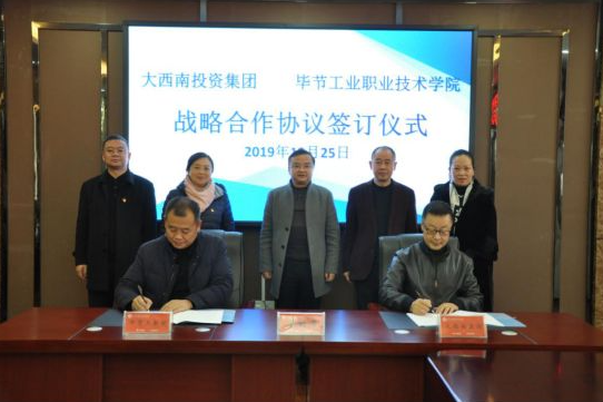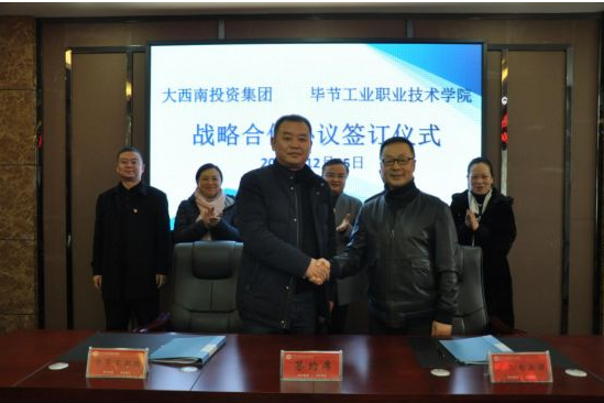 智慧共生,合作共贏。為深入貫徹《國(guó)家職業(yè)教育改革實(shí)施方案》,加強(qiáng)校企合作、人才培養(yǎng)和培訓(xùn),2019年12月25日,畢節(jié)工業(yè)職業(yè)技術(shù)學(xué)院與大西南投資集團(tuán)有限責(zé)任公司校企合作戰(zhàn)略協(xié)議簽訂儀式在學(xué)院同心樓三樓會(huì)議室正式舉行。