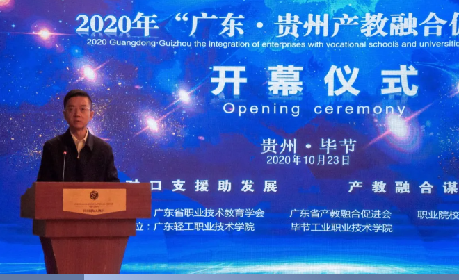 10月23日,廣東?貴州產(chǎn)教融合促進(jìn)大會(huì)在畢節(jié)隆重召開(kāi)。廣東省教育廳巡視員朱俊文,貴州省教育廳一級(jí)巡視員鞠洪出席會(huì)議并致辭,畢節(jié)市委常委、副市長(zhǎng)胡愛(ài)斌致歡迎辭,廣東輕工職業(yè)技術(shù)學(xué)院黨委書(shū)記杜安國(guó)作介紹,會(huì)議由畢節(jié)工業(yè)職業(yè)技術(shù)學(xué)院黨委副書(shū)記、院長(zhǎng)邱國(guó)援全程主持。廣東省教育廳、貴州省教育廳、廣州市教育局、畢節(jié)市教育局相關(guān)負(fù)責(zé)人及參與產(chǎn)教融合大會(huì)的校企單位主要負(fù)責(zé)人參加會(huì)議。此次會(huì)議由廣東省職業(yè)技術(shù)教育學(xué)會(huì)、廣東省產(chǎn)教融合促進(jìn)會(huì)、職業(yè)院校協(xié)同發(fā)展聯(lián)盟主辦,廣東輕工職業(yè)技術(shù)學(xué)院、畢節(jié)工業(yè)職業(yè)技術(shù)學(xué)院承辦。